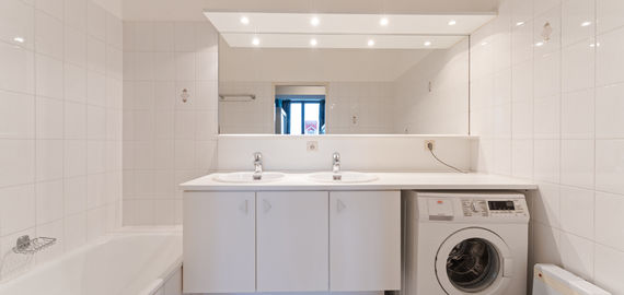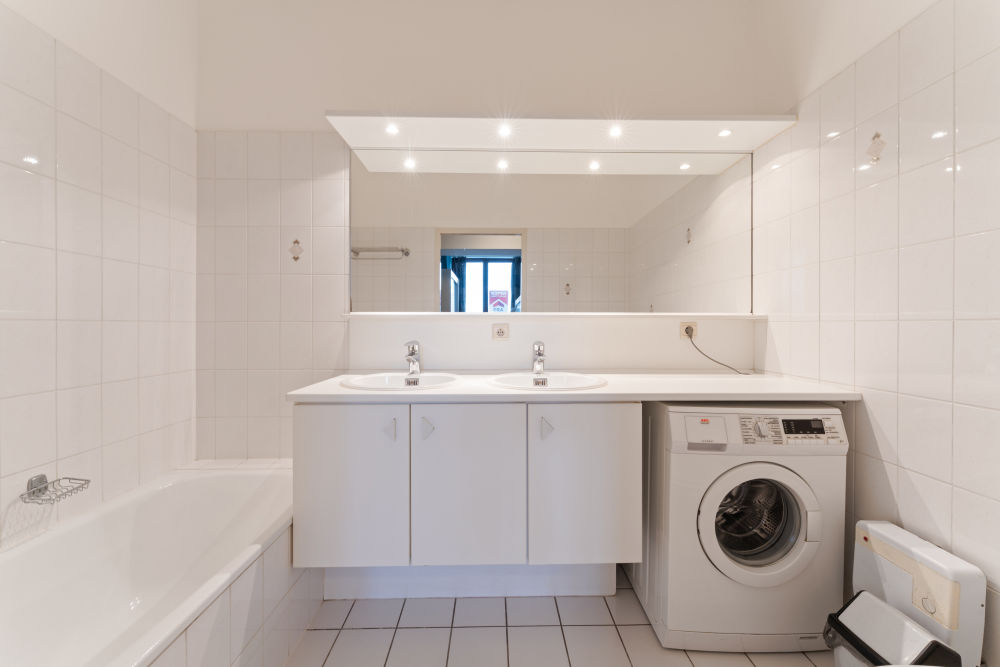 Het appartement beschikt over 2 badkamers met ligbad en douche, een volledig ingerichte keuken met koelkast – diepvriezer – oven en microgolf – vitro keramische kookplaten – afwasmachine en voor de lange verblijvers ook een wasmachine met een droogkast !